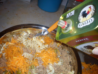 A minha levou queijo minas padrão em cubos, champignon fatiado, azeitona verde picada, atum ralado ao natural, cenoura crua ralada, tudo temperado com alecrim fresco - sim, mutilei minha plantinha - e regado a azeite de boa qualidade.